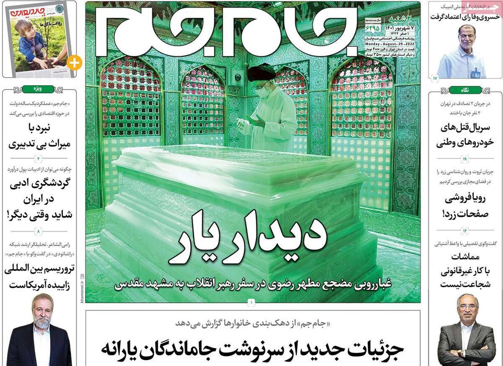 حضور رهبرمعظم انقلاب در مراسم غبارروبی حرم امام رضا(ع)، گزارشهای دولتی از دستاوردها و… از تیترهای امروز روزنامه هاست.