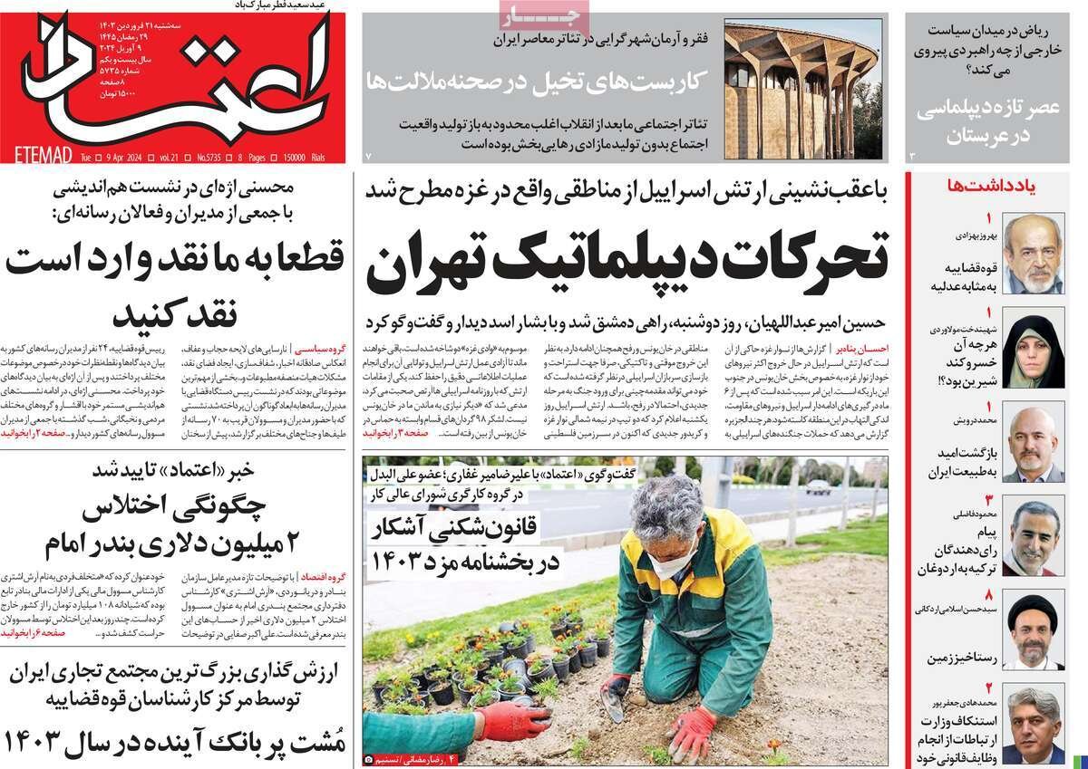صفحه اول روزنامه های سه شنبه ۲۱فروردین۱۴۰۳