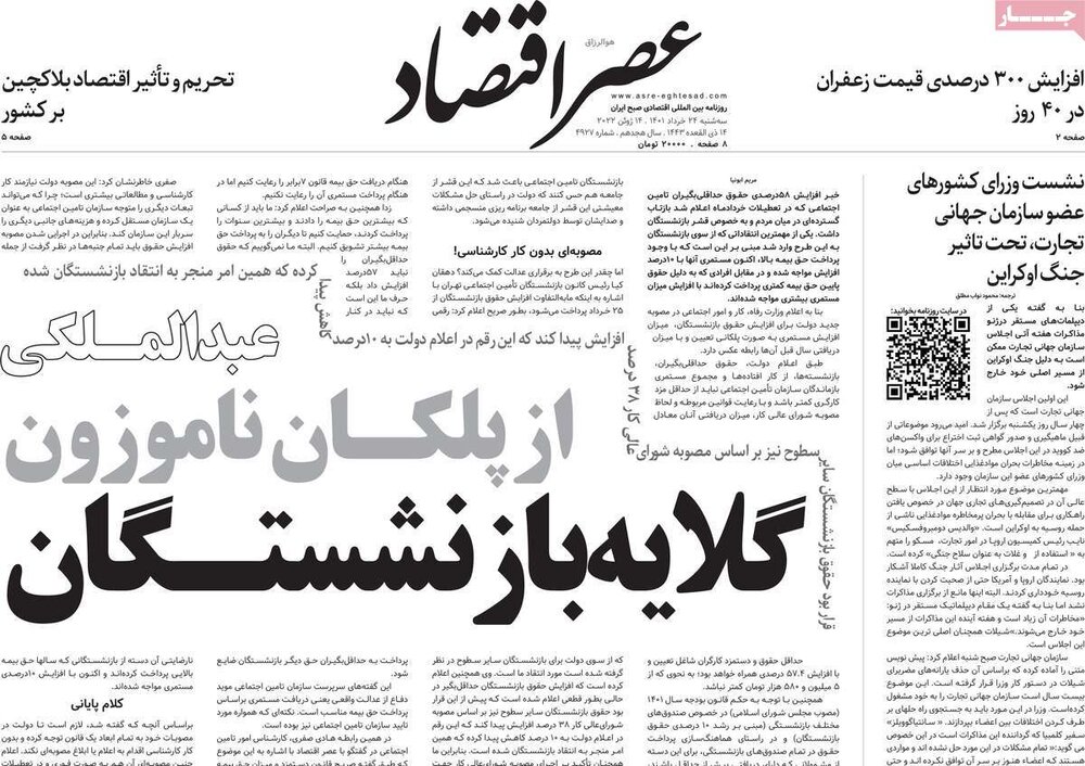 صفحه اول روزنامه های سه شنبه 24خرداد1401
