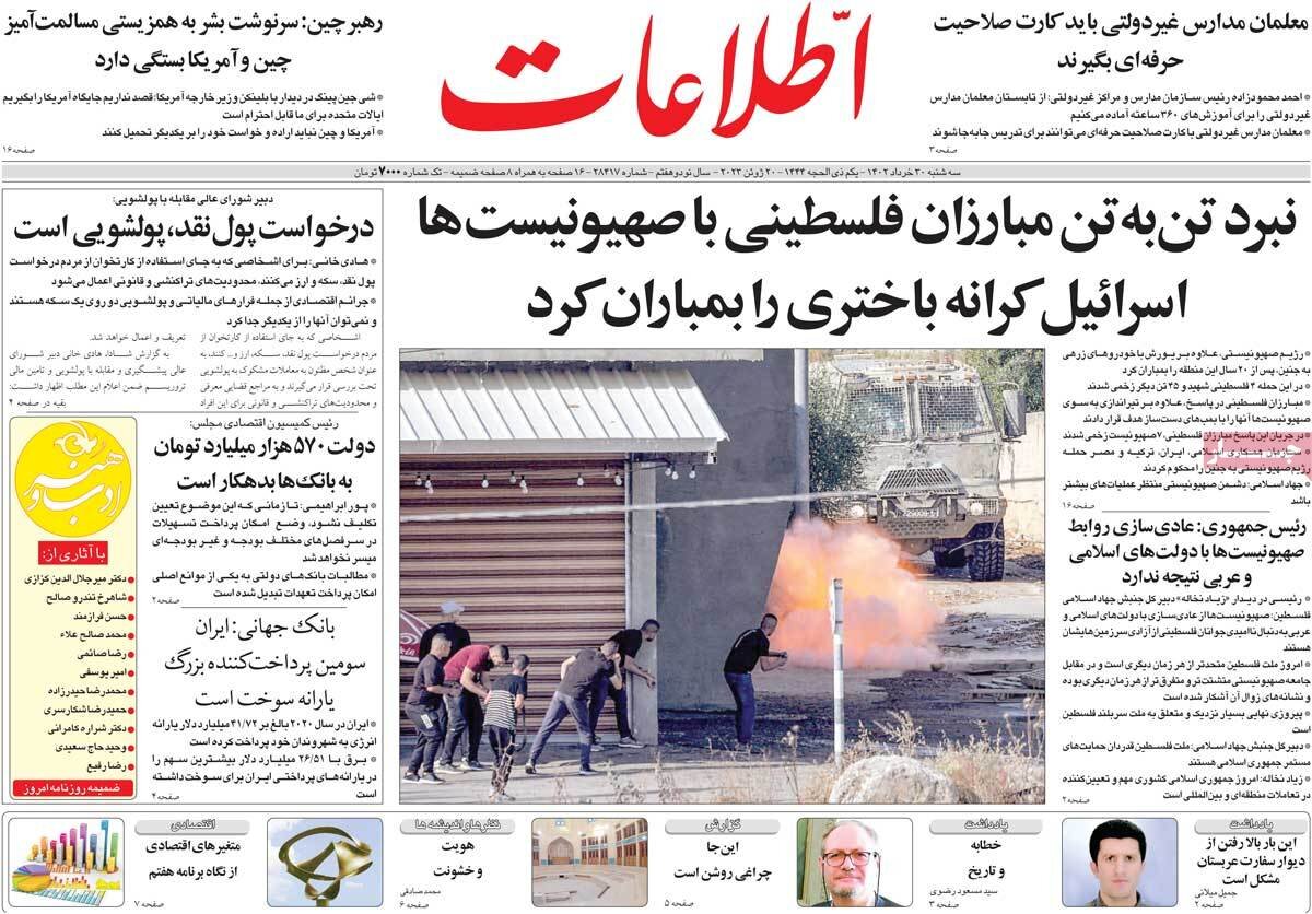 صفحه اول روزنامه های سه شنبه 30خرداد1402