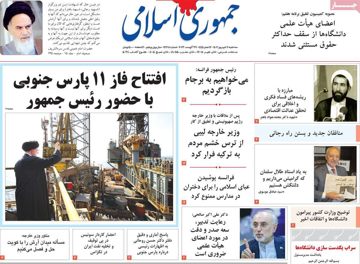 صفحه اول روزنامه های سه شنبه 7شهریور