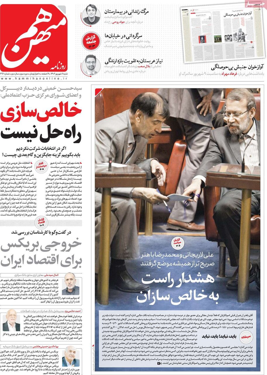 صفحه اول روزنامه های شنبه 11شهریور ۱۴۰۲