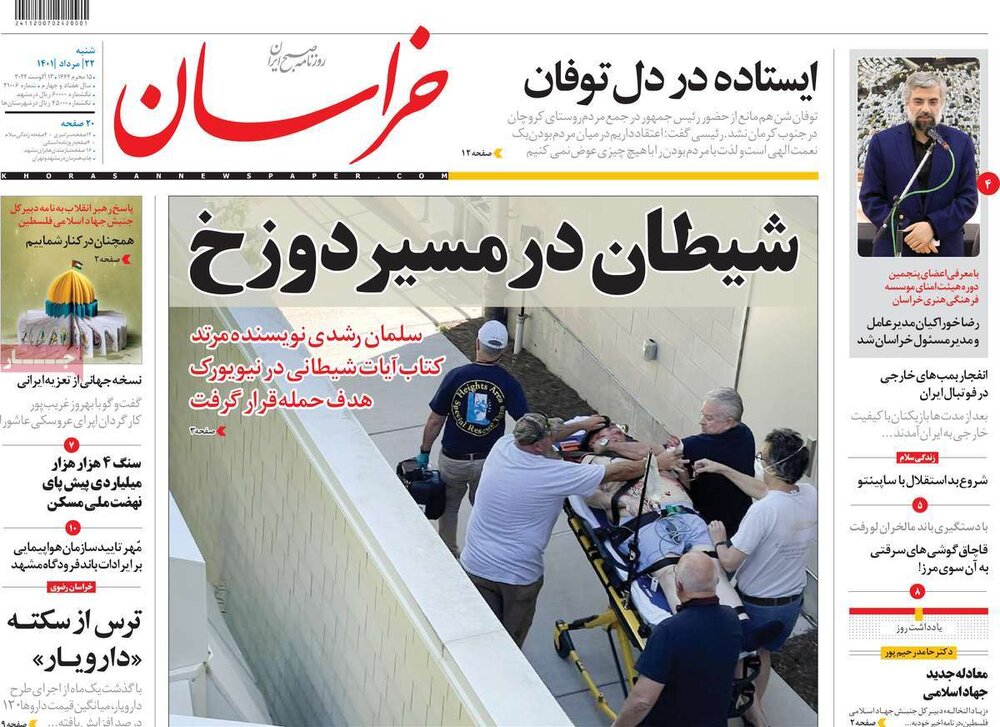 مضروب شدن سلمان رشدی ، نقد یادداشت اخیر میرحسین موسوی، سفر استانی رئیسی به کرمان و… از تیترهای مطبوعات امروز است.