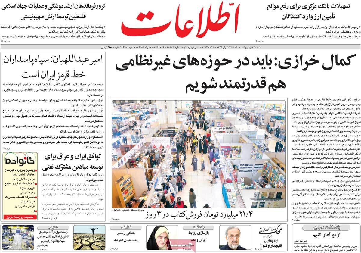 صفحه اول روزنامه های شنبه 23 اردیبهشت 1402