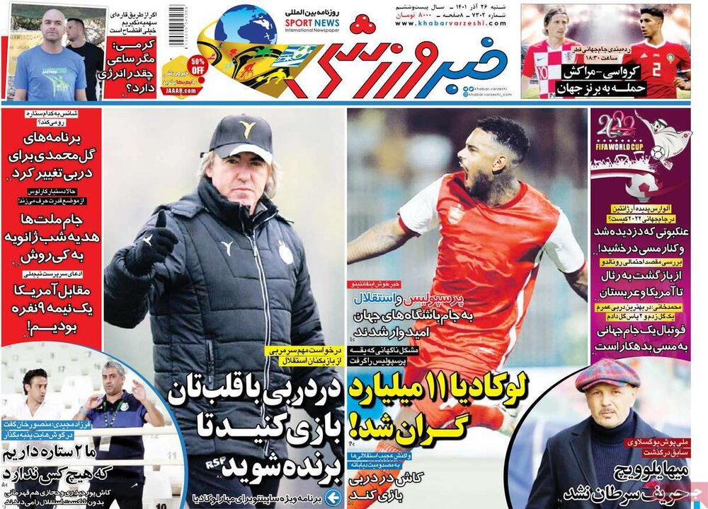 صفحه اول روزنامه های شنبه 26 آذر 1401