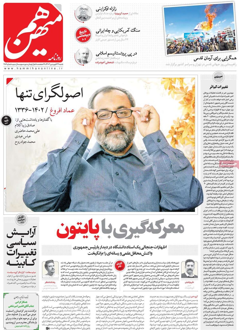 صفحه اول روزنامه های شنبه26فروردین 1402