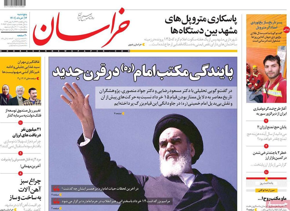 فرارسیدن سالگرد رحلت امام خمینی و خط و نشان کشیدن های آژانس بین المللی انرژی هسته ای از تیترهای مطبوعات امروز است.
