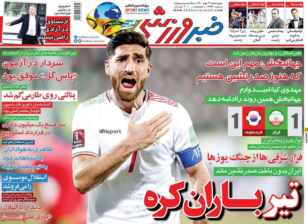 صفحه اول روزنامه های چهارشنبه۲۱مهر۱۴۰۰