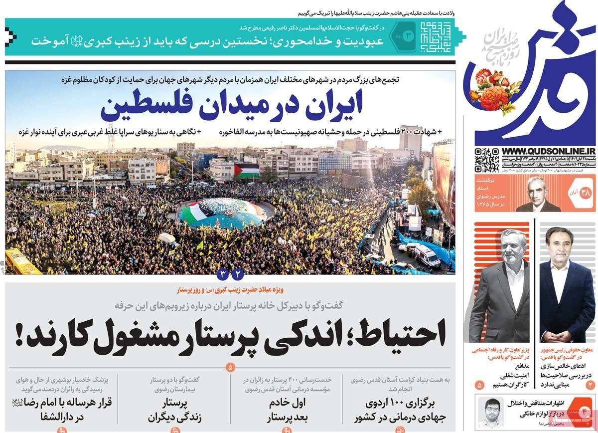 تظاهرات حمایت از فلسطین،محکومیت اسحاق جهانگیری به خاطر شکایت قالیباف و… از تیترهای مطبوعات امروز است.