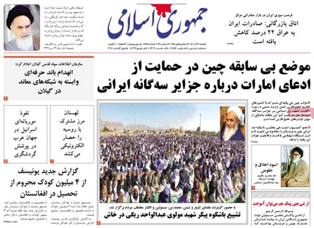 صفحه اول روزنامه های یکشنبه 20 آذر ؛ افزایش انتقادات از موضعگیری ضدایرانی توسط چین و سعودی