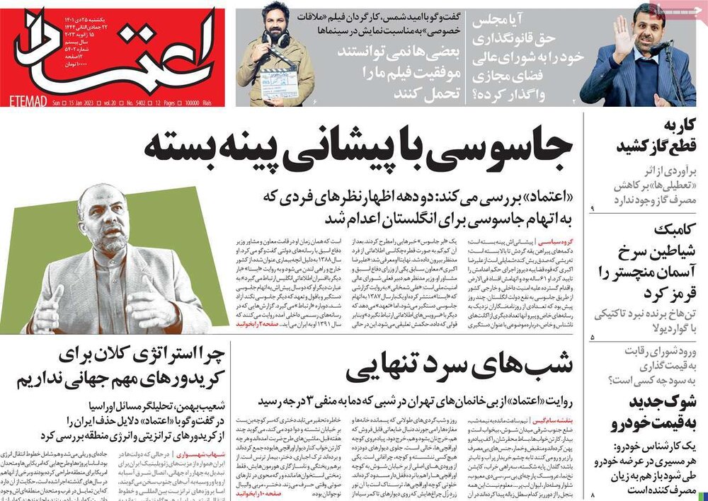 اعدام جاسوس انگلیس، تشدید بحران کمبود گاز و… از تیترهای مطبوعات امروز است.