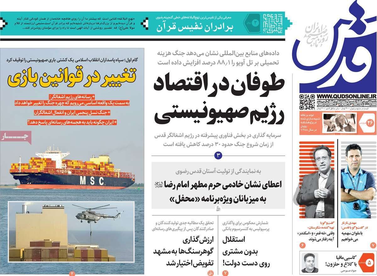حمله موشکی پهپادی ایران به اسرائیل، توقیف کشتی اسرائیلی و… از تیترهای مطبوعات امروز است.