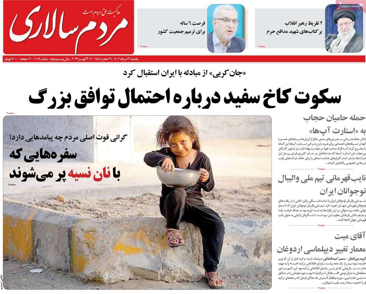 صفحه اول روزنامه های یکشنبه22مرداد 1402