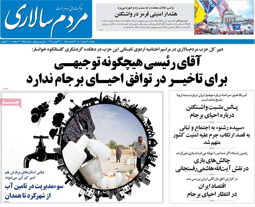 صفحه اول روزنامه های یکشنبه30مرداد1401