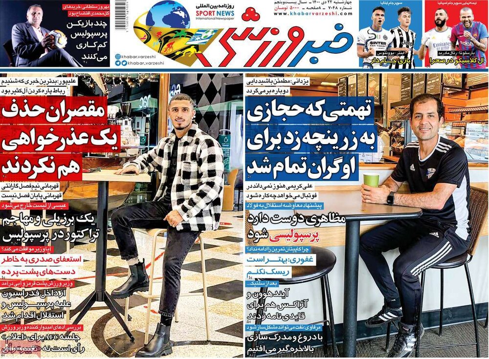 صفحه اول روزنامه های ۴ شنبه ۲۲ دی ۱۴۰۰