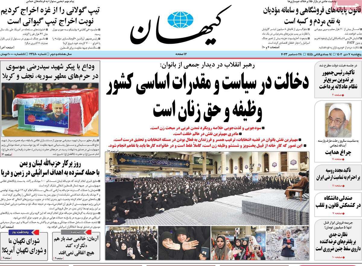 بیانات رهبرمعظم انقلاب در جمع بانوان، بازی تازه سیاسی در باره غنی سازی و… از تیترهای امروز مطبوعات است.