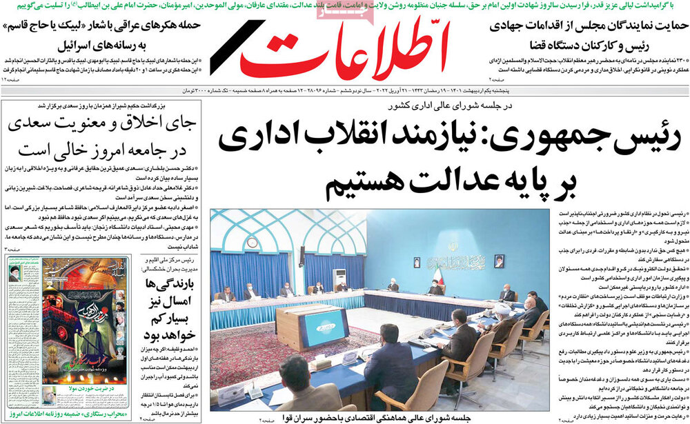 صفحه اول روزنامه های ۵ شنبه اول اردیبهشت ۱۴۰۱