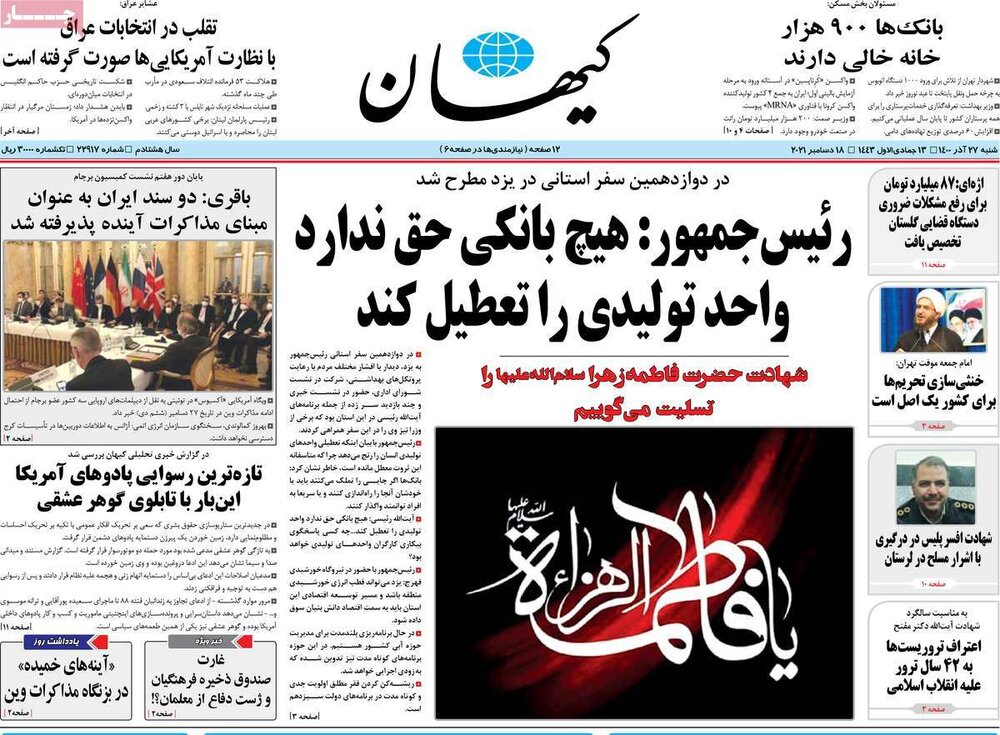پایان دور هفتم مذاکرات برجام در وین، سفر رئیس جمهور به استان یزد و… از تیترهای روزنامه های امروز است.