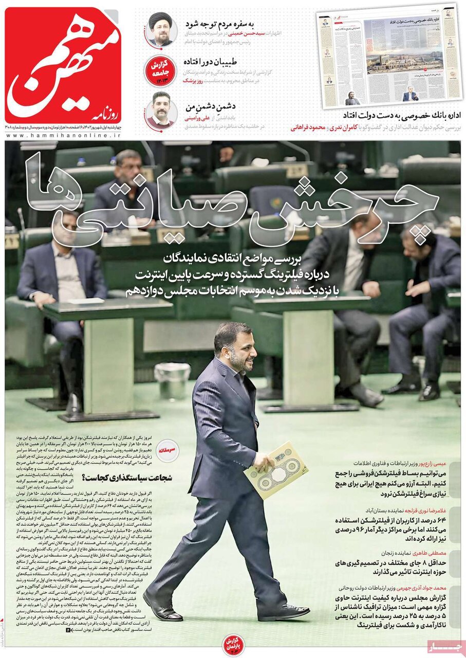 اعتراف تلخ وزیر ارتباطات به شکست فیلترینگ،بازتاب سفر رئیسی به قم و… از تیترهای مطبوعات امروز است.