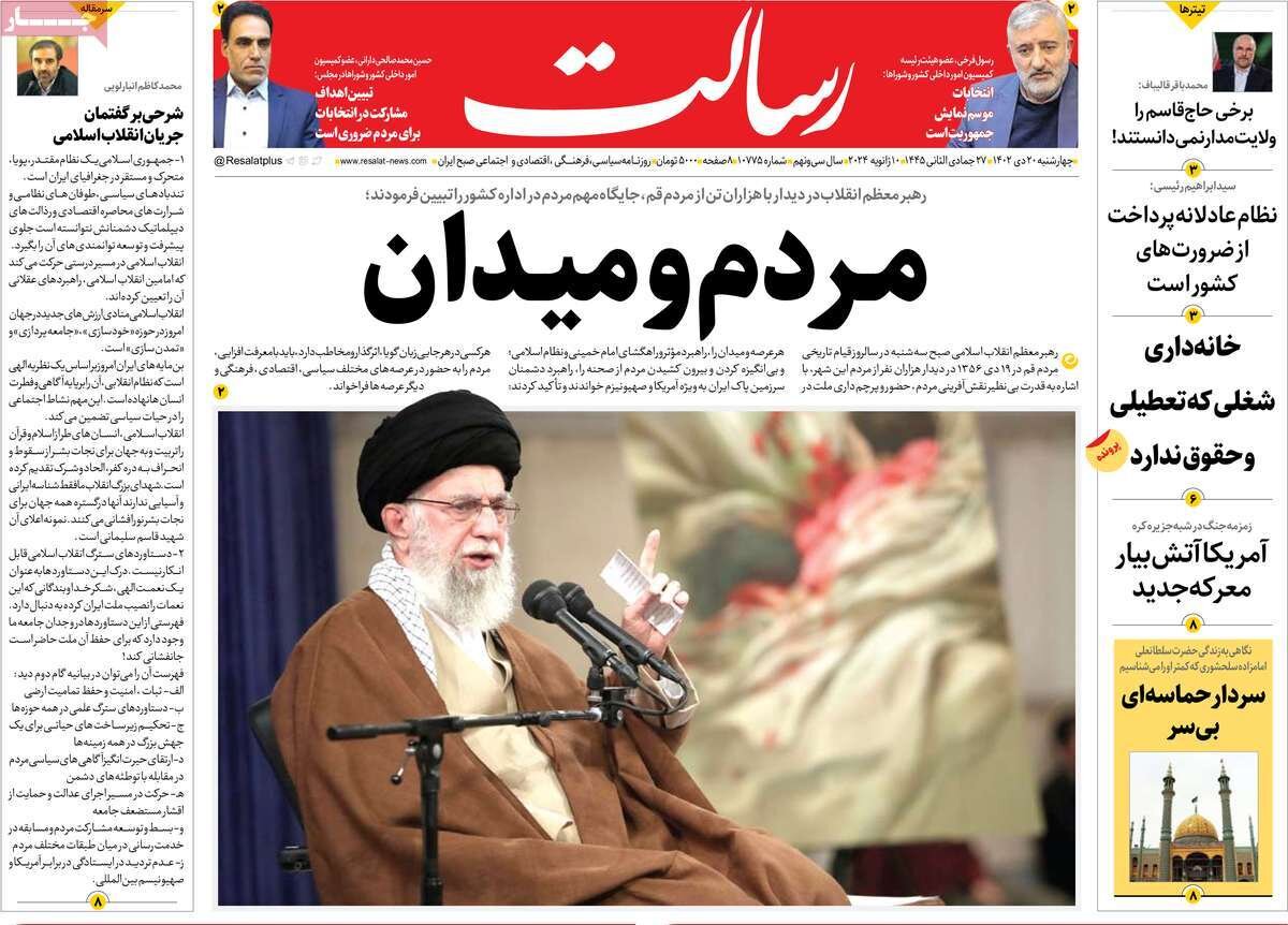 بیانات رهبرمعظم انقلاب در جمع مردم قم، تداوم جنایت در غزه توسط ارتش اسرائیل و… از تیترهای امروز مطبوعات است.
