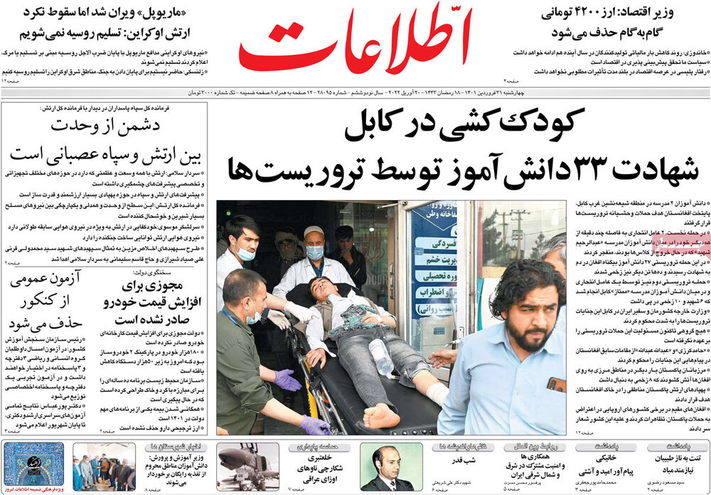 جنایت داعش در افغانستان،ادعاها و وعده های سخنگوی دولت و… از تیترهای مطبوعات امروز است.
