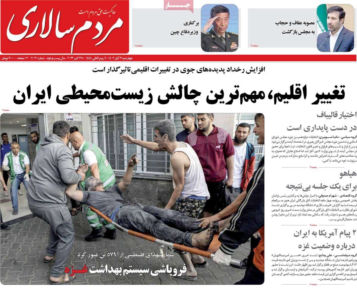 صفحه اول روزنامه های 4 شنبه سوم آبان 1402