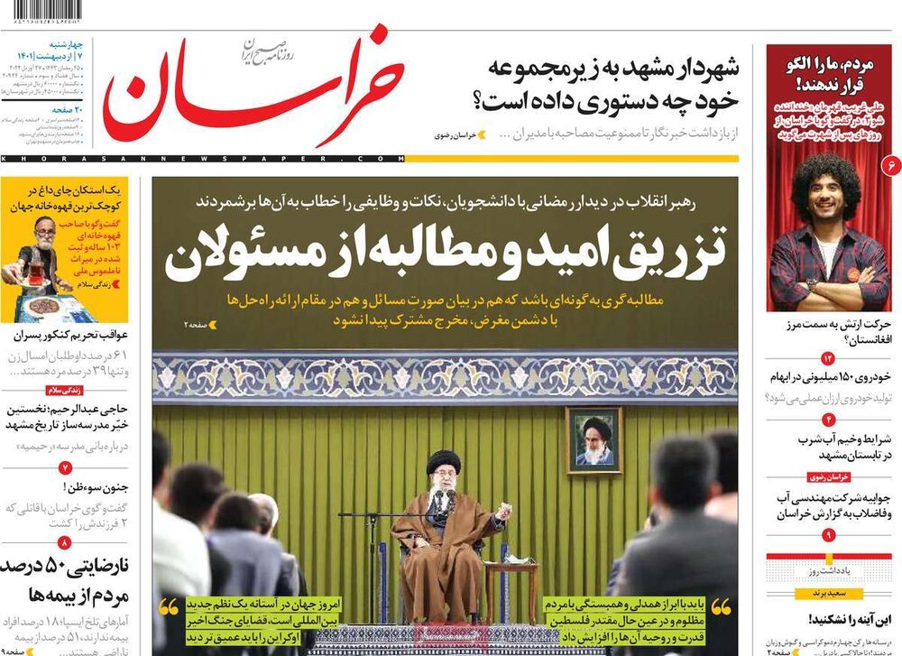 بیانات رهبرمعظم انقلاب در پاسخ مطالب صریح دانشجویان تیتر مشترک روزنامه های امروز است.