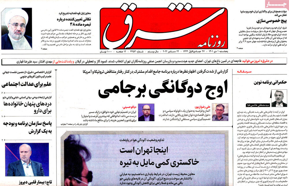 صفحه اول روزنامه های 5شنبه اول دی ماه1401