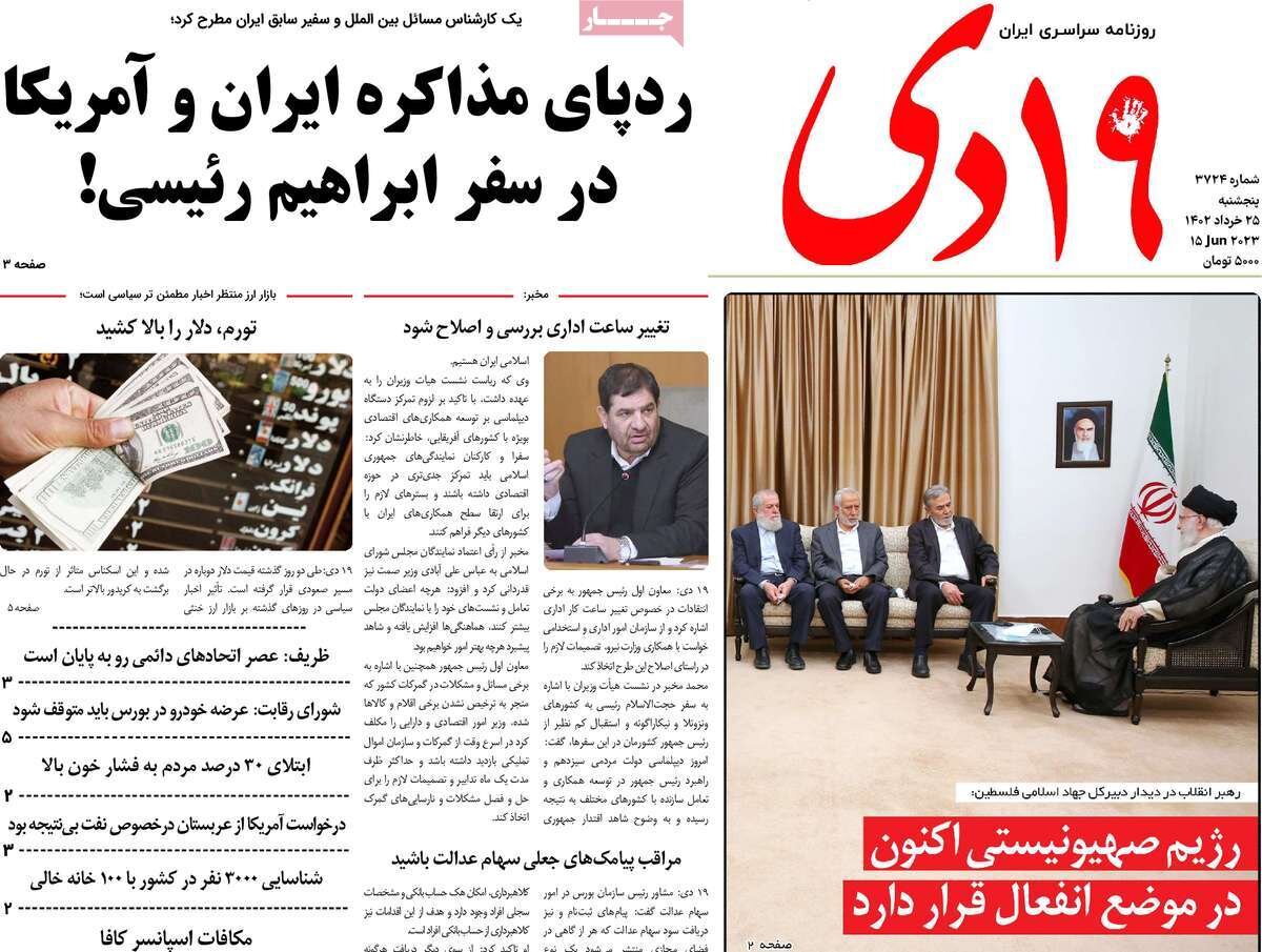 صفحه اول روزنامه های 5شنبه 25 خرداد 1402