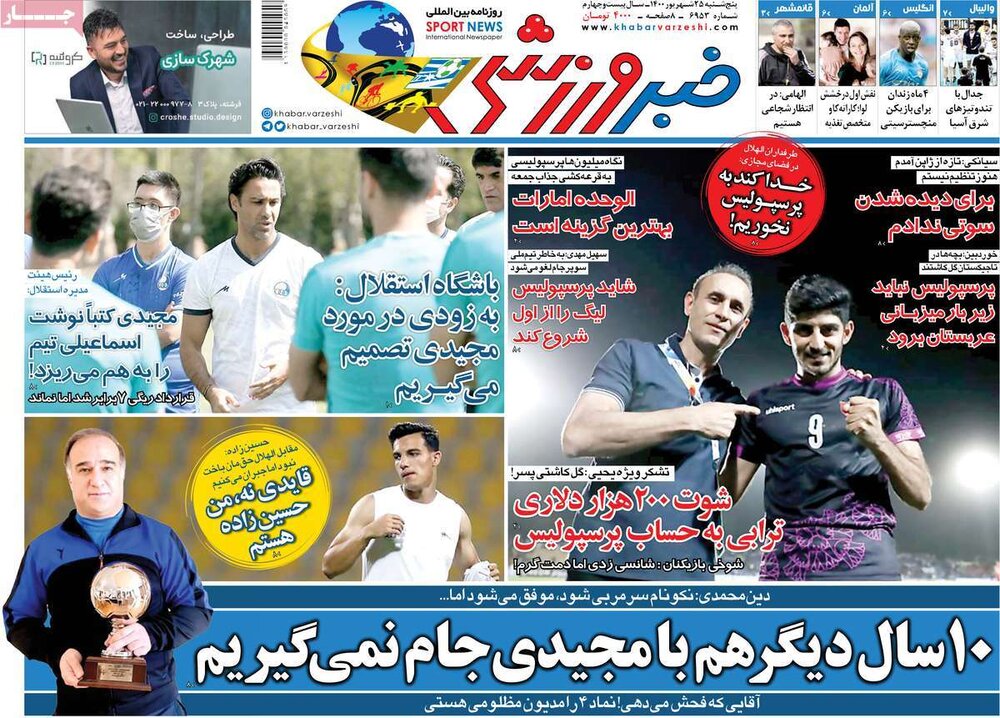 صفحه اول روزنامه های 5شنبه 25 شهریور 1400