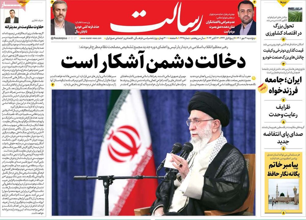 صفحه اول روزنامه های 5 شنبه 21 مهر1401