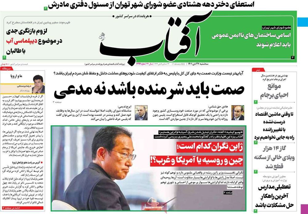 صفه اول روزنامه های سه شنبه 27دی 1401