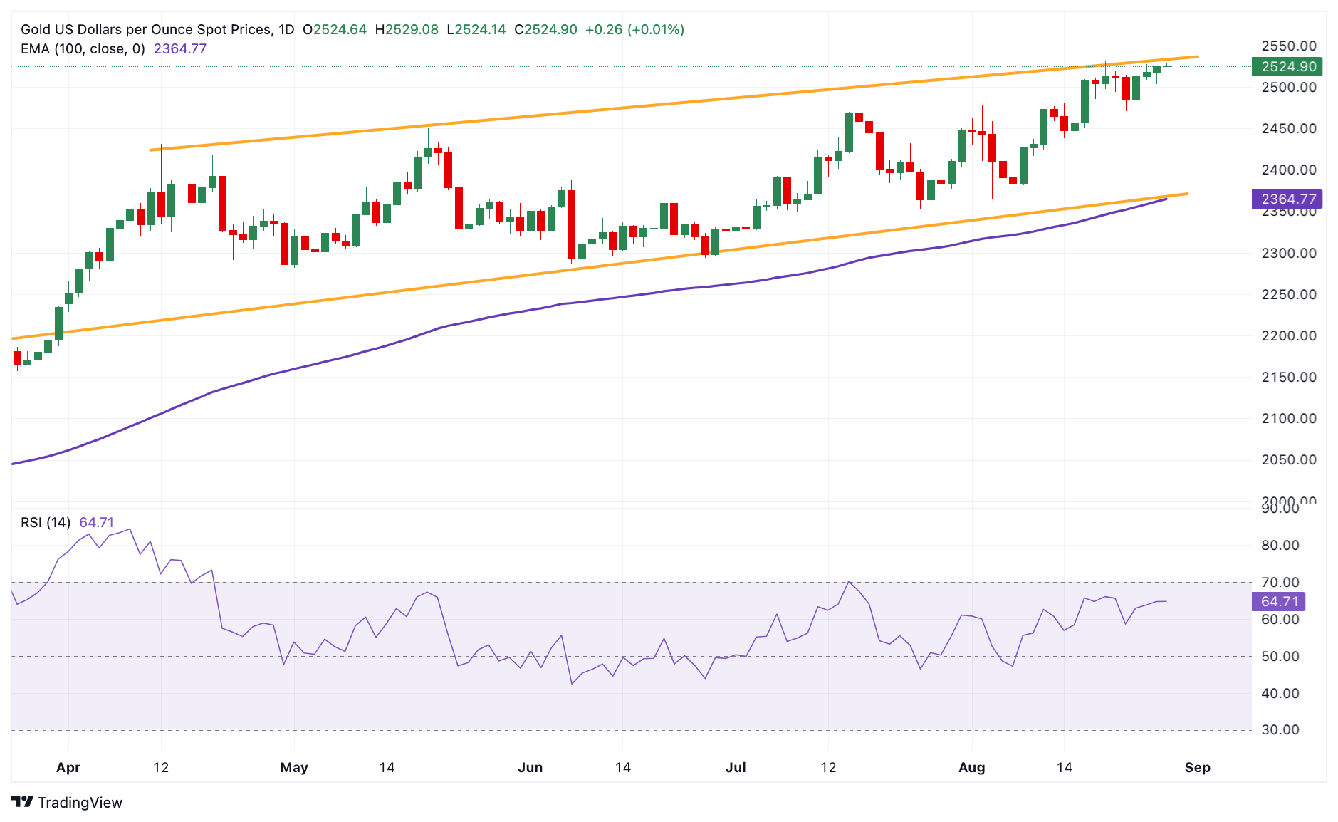 قیمت طلا (XAU/USD) در بحبوحه بازگشت اندک دلار آمریکا (USD) در روز چهارشنبه، حرکت خود را از دست داد. با این حال، تشدید تنش های ژئوپلیتیکی در خاورمیانه ممکن است به محدود کردن خسارات آن کمک کند. علاوه بر این، سخنرانی جروم پاول، رئیس فدرال رزرو ایالات متحده (فدرال رزرو) در سمپوزیوم جکسون هول در هفته گذشته، که نشان می دهد «زمان برای شروع کاهش نرخ بهره فرا رسیده است»، ممکن است از فلز گرانبها حمایت کند زیرا هزینه فرصت نگهداری بدون بهره را کاهش می دهد. دارایی ها