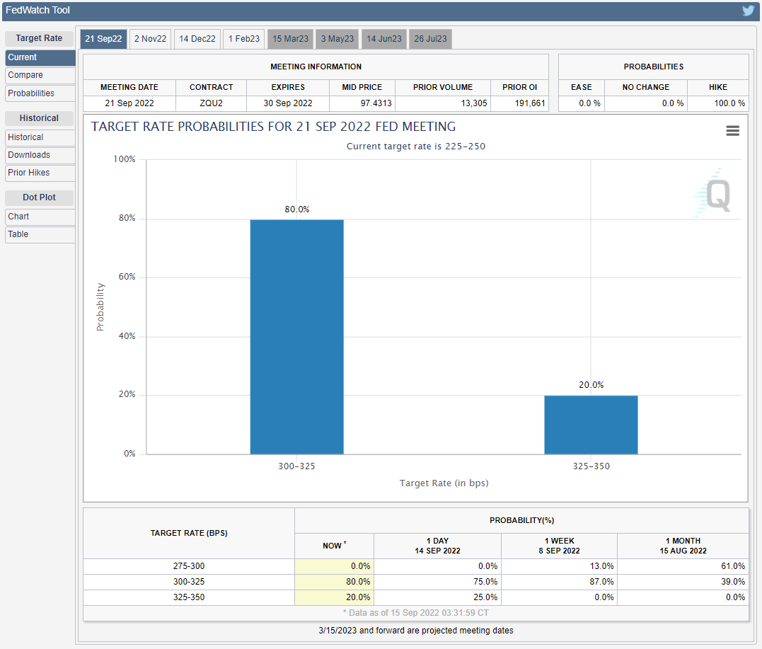 در واقع، CME FedWatch Tool منعکس کننده احتمال 100 درصدی است که نرخ بهره وجوه فدرال رزرو را تا آستانه جدیدی از 3.00 درصد به 3.25 درصد افزایش دهد، در حالی که داده ها نیز احتمال 20 درصدی را برای افزایش 100 واحدی نرخ بهره را نشان می دهد، همانطور که بانک مرکزی در نظر دارد. یک سیاست محدود کننده را اجرا کنید.