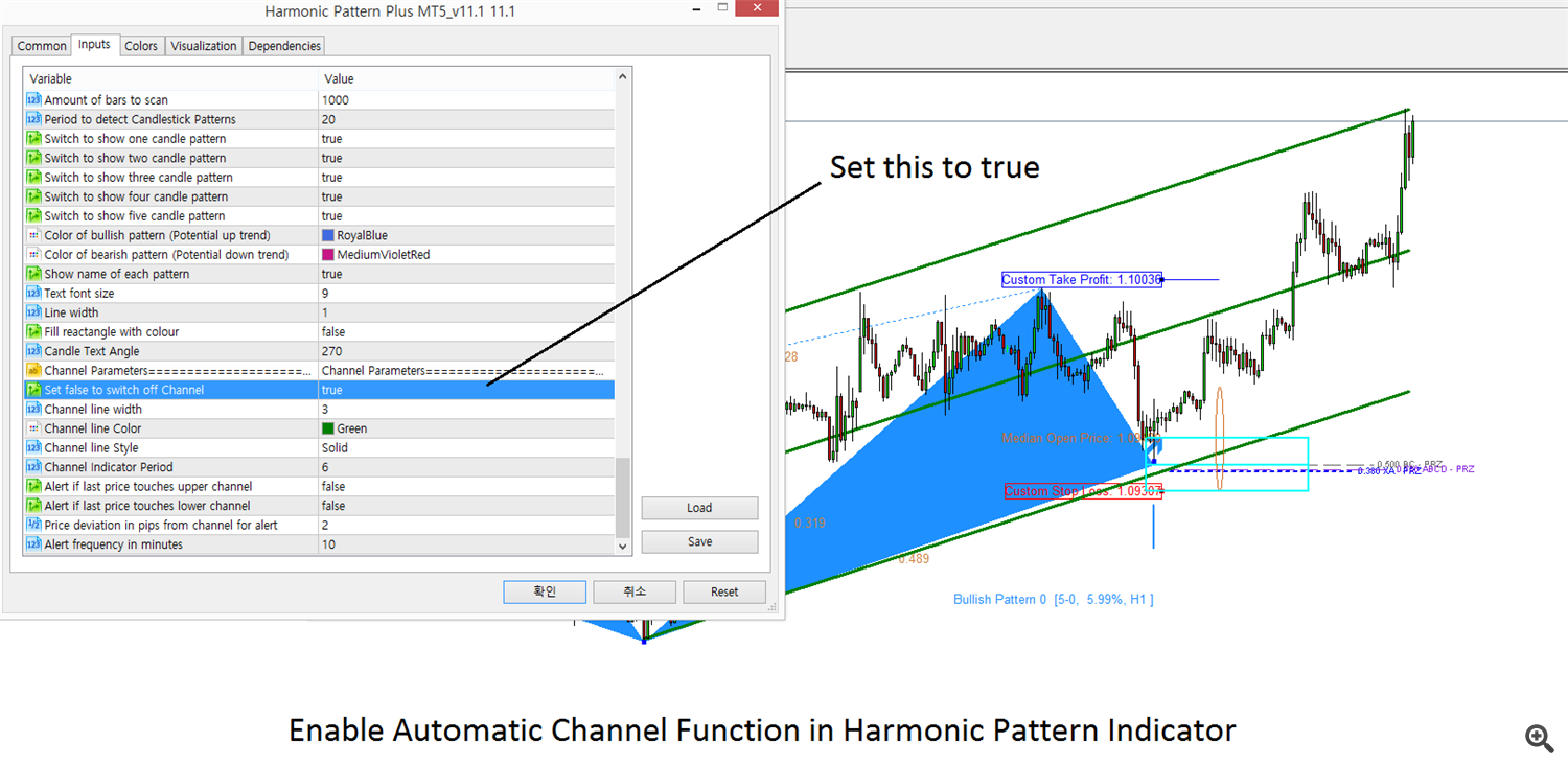 ما ویژگیهای قدرتمند کانال خودکار را در نشانگر الگوی هارمونیک ارائه کردیم. برای فعال کردن عملکرد خودکار کانال، فقط Use Channel = true را در قسمت ورودی های پارامتر کانال تنظیم کنید.