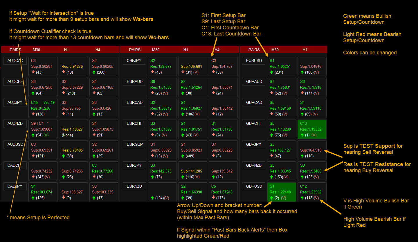 این بر اساس مجموعه شاخص‌های TD Sequential و TD Combo Demark است. بیشتر دارای ویژگی های TD Sequential است.