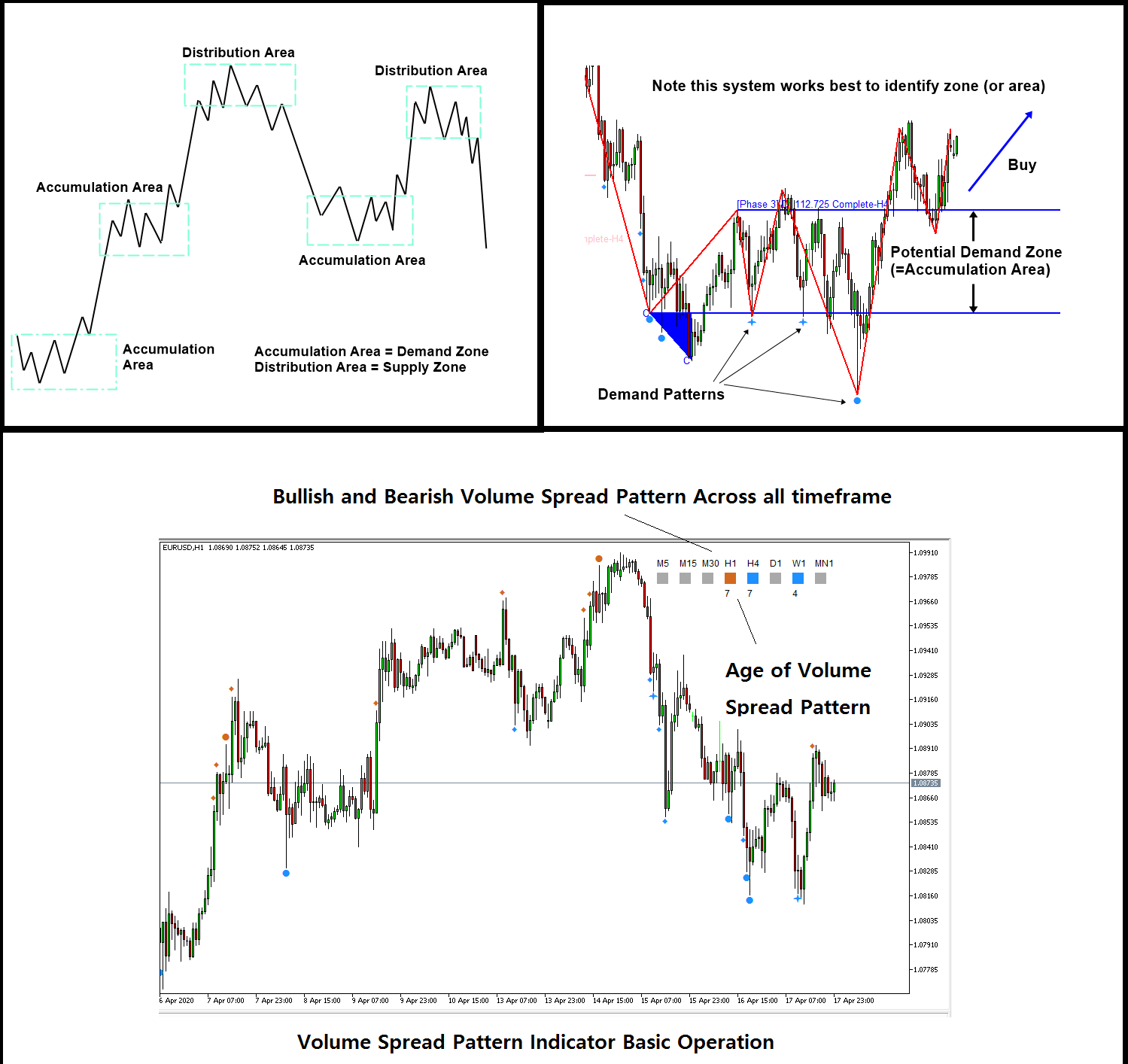 هر دو نشانگر الگوی پخش حجم و آشکارساز الگوی پخش حجم به خوبی با نشانگر حرکت بیش از حد کار می کنند زیرا نشانگر حرکت بیش از حد به تشخیص خودکار منطقه بالقوه تجمع و توزیع کمک می کند. از این رو، اگر از نشانگر حرکت بیش از حد استفاده می کنید، می توانید از نشانگر الگوی گسترش حجم یا آشکارساز الگوی پخش حجم استفاده کنید. علاوه بر این، ما ویدیوی YouTube را برای انجام عملیات اساسی نشانگر حرکت بیش از حد ارائه می دهیم.