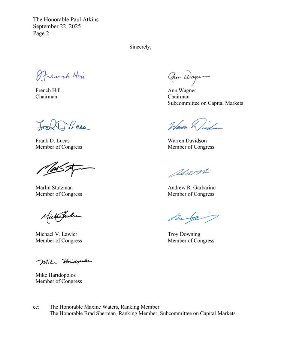 در نامه ای خطاب به رئیس SEC ، پل اتکینز ، آنها ابراز حمایت از دستور اجرایی اخیر رئیس جمهور ترامپ 14330 در مورد “دموکراتیک کردن دسترسی به دارایی های جایگزین برای 401 (k) سرمایه گذاران.”