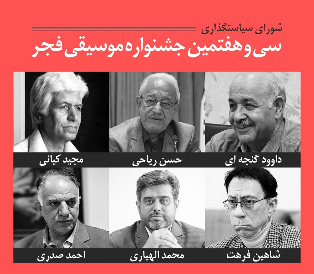 محمد الهیاری فومنی (مدیرکل دفتر موسیقی)، حسن ریاحی (دبیر سیوهفتمین جشنواره موسیقی فجر)، احمد صدری، شاهین فرهت، مجید کیانی و داود گنجهای، اعضای شورای سیاستگذاری جشنواره موسیقی فجر هستند.