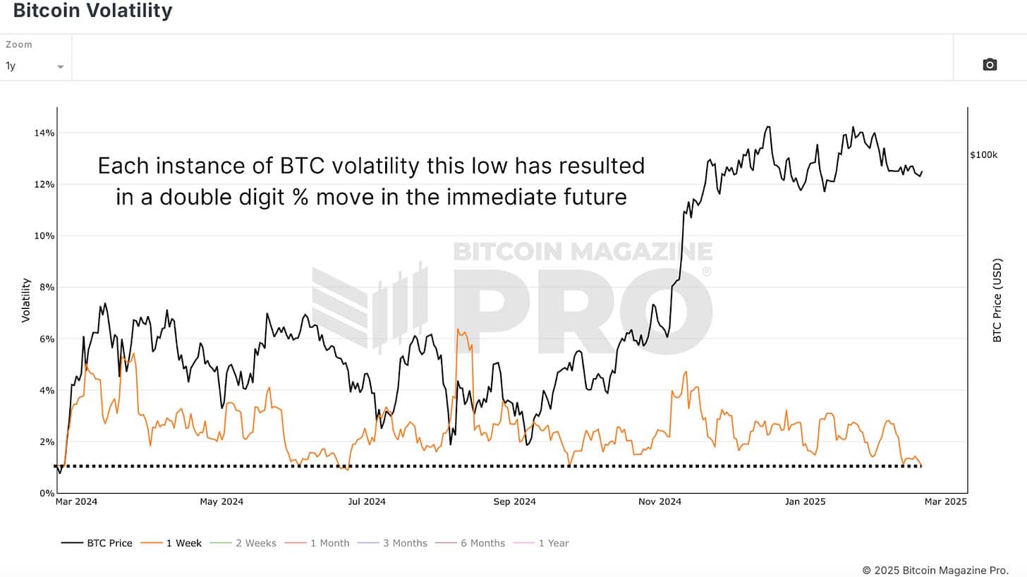 هر بار که نوسانات به این سطح کاهش می یابد ، بیت کوین در هفته های بعد حداقل 20 تا 30 ٪ ، اگر بیشتر نباشد ، تجربه می کرد.