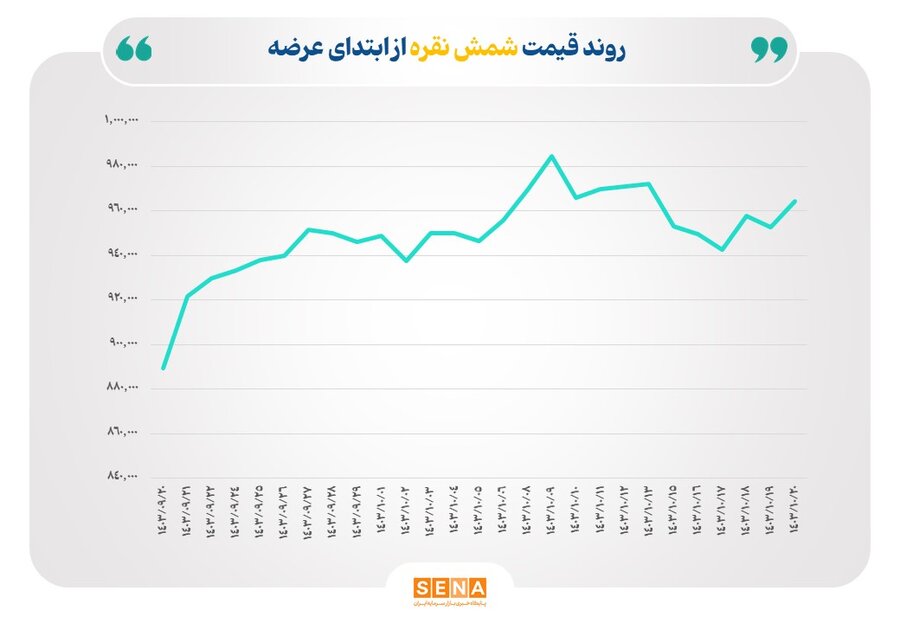 به گزارش پایگاه خبری بازار سرمایه ایران(سنا)، از ۲۰ آذرماه، که مبادلات نقره در بورس کالا آغاز شده، تاکنون، در مجموع ۲۱۵۲ کیلوگرم شمش نقره در قالب گواهی سپرده و قرارداد آتی به ارزش بیش از ۲۰۲ میلیارد تومان معامله شده است.