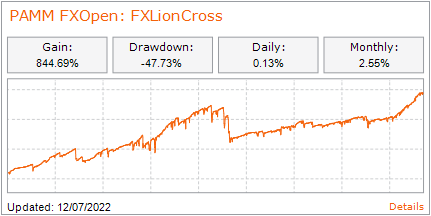 این یکی از اکانت های طولانی مدت در سایت FXOpen است. معاملات از مارس 2014 انجام شده است. به لطف یک استراتژی کاملاً تعریف شده، سال به سال، ارائه دهنده برای سرمایه گذاران خود سود به ارمغان می آورد.