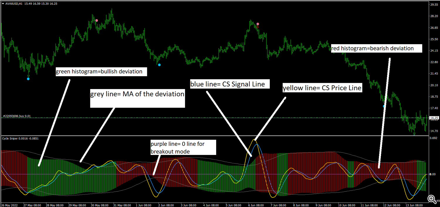 همانطور که می دانید Cycle Sniper دارای 2 خط اصلی است. یکی CS Price Line (زرد) و CS Signal Line (آبی) است.