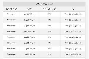 مگان دست دوم ۷۵۰ میلیون تومان قیمت خورد! + جدول قیمت