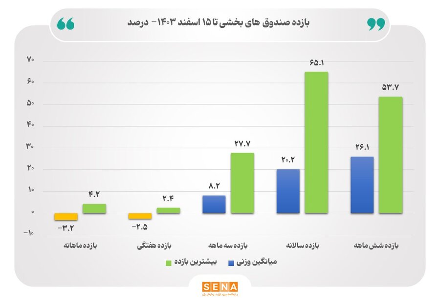 میانگین بازده وزنی صندوق‌های بخشی بورس از ۲۰ درصد فراتر رفت/ بیش‌ترین بازده سالانه صندوق‌های بخشی تا ۱۵ اسفند امسال ۶۵.۱ درصد بوده است – سنا<br />