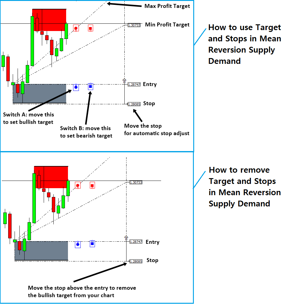 یکی از بزرگترین مزیت های تقاضای عرضه معکوس این است که سود منعطف و هدف متقابل را برای معاملات شما فراهم می کند. پس از اینکه نحوه استفاده از این اهداف سود را آموختید ، اکنون می خواهید نحوه حذف آنها را بیاموزید. البته راهی برای حذف آنها وجود دارد. این ترفند به سادگی انتقال متن توقف به بالای متن Entry (در مورد خرید) است. در مورد فروش ، برعکس عمل خواهید کرد. در تصویر صفحه ، تصویر پایین نحوه حذف اهداف از نمودار شما را شرح می دهد.