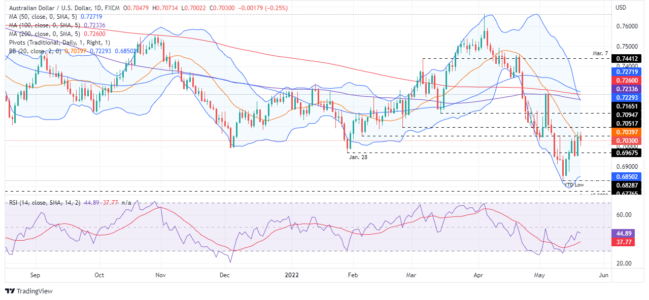 AUD/USD با وجود رالی روز پنجشنبه که جفت را از زیر 0.7000 به سمت بالاترین هفتگی رساند، همچنان در جهت نزولی است. بسته شدن روزانه جمعه به زیر 20-DMA در 0.7039، عمده را در معرض فشار فروش قرار می دهد.