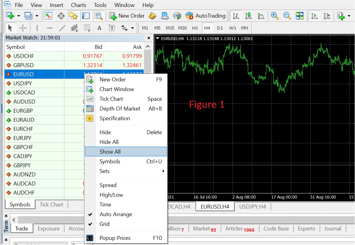 قبل از استفاده از این نشانگر، لطفاً مطمئن شوید که همه نمادها در “مراقب بازار” قابل مشاهده هستند (شکل 1 را ببینید).