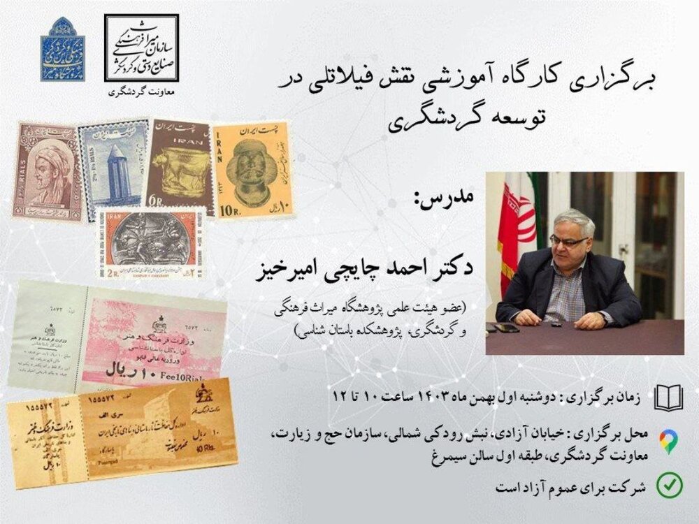 به گزارش ایسنا، کارگاه آموزشی با موضوع «نقش فیلاتلی در توسعه گردشگری» دوشنبه، اول بهمنماه ۱۴۰۴ برگزار میشود. این کارگاه با تدریس دکتر احمد چاپچی امیرخیز، عضو هیأت علمی پژوهشگاه میراث فرهنگی و گردشگری به بررسی نقش فیلاتلی در شناسایی مقاصد گردشگری و توسعه این صنعت میپردازد.