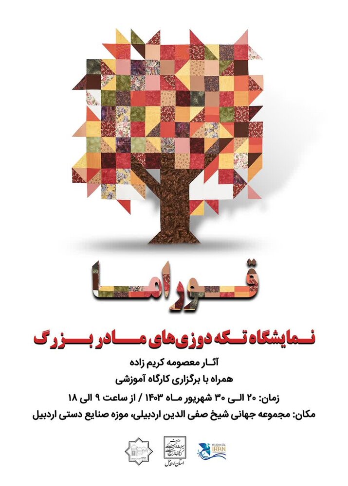 توحید دلاورقوام ۱۸ شهریور گفت: نمایشگاه تکهدوزیهای مادربزرگ حاصل سالها فعالیت هنرمند نامی استان خانم معصومه کریمزاده با عنوان نمایشگاه قوراما در اردبیل برگزار میشود.